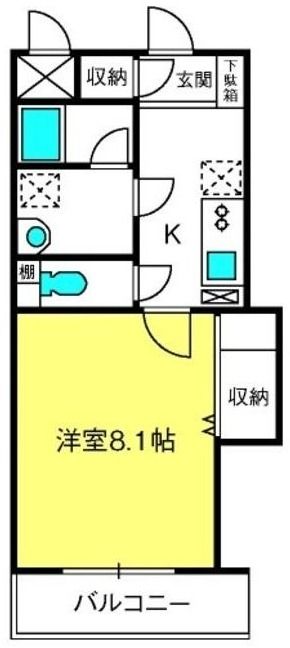 1K( 洋室8.1畳/洋室8.1畳(*階) ) |
