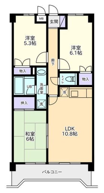 3LDK( LDK10.8畳/和室6畳/洋室5.3畳/洋室6.1畳 ) |