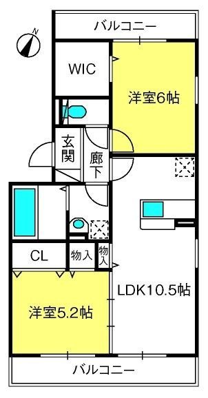 2LDK( LDK10.5畳/洋室6畳(*階)/洋室5.2畳(*階) ) |