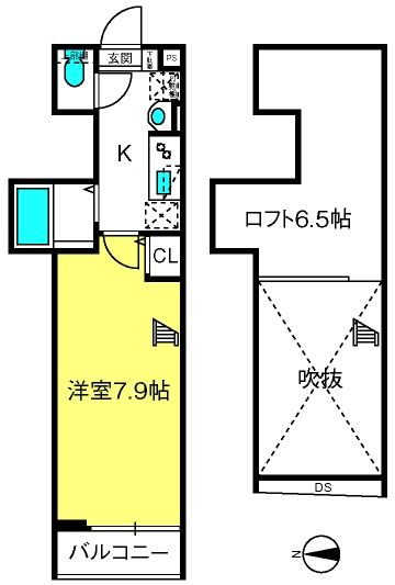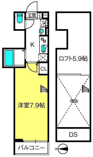 1K( 洋室7.9畳/K2畳 ) |