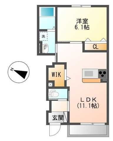 1LDK( 洋室6.1畳/LDK11.1畳(*階) ) |