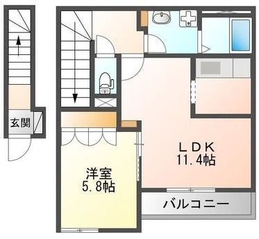 1LDK( 洋室5.8畳/LDK11.4畳 ) |