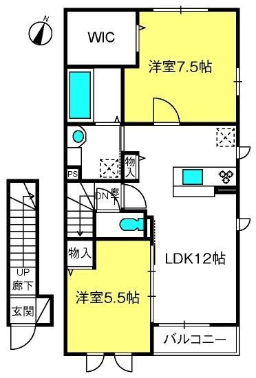 2LDK( 洋室5.5畳/洋室7.5畳/LDK12畳 ) |