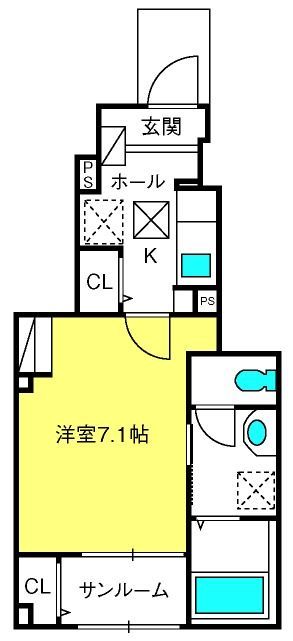 1K( 洋室7.1畳 ) |