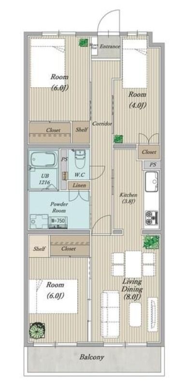 3LDK( 洋室6畳/洋室6畳/洋室4畳/LDK11.8畳 ) |
