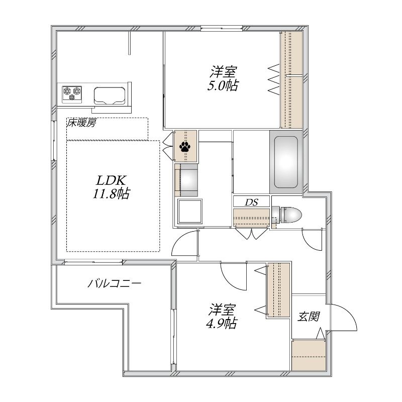 3LDK( LDK12.8畳/洋室4.8畳/洋室5畳/洋室4.8畳 ) |