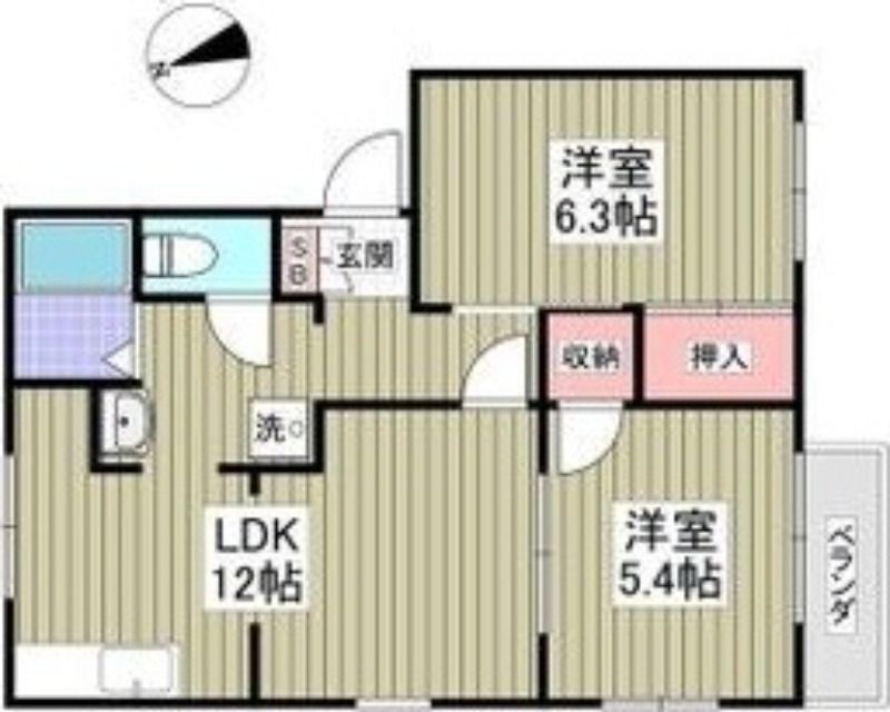 2LDK( LDK12畳/洋室5.4畳/洋室6.3畳 ) |