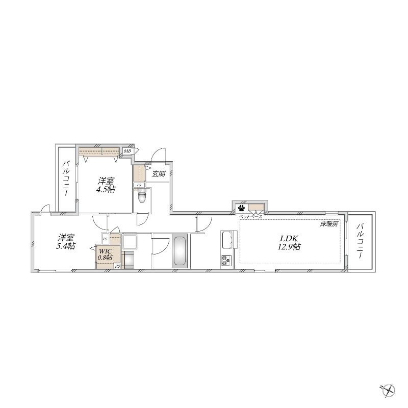 2LDK( LDK12.9畳/洋室5.4畳/洋室4.5畳 ) |