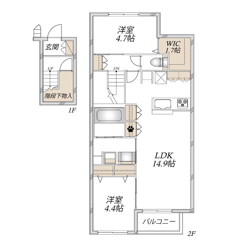 2LDK( LDK14.9畳/洋室4.4畳/洋室4.7畳 ) |