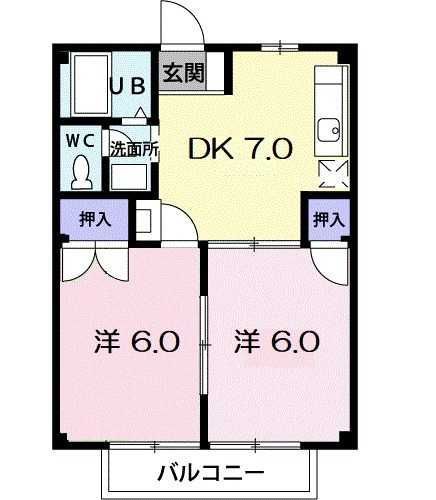 2DK( 洋室6畳/洋室6畳/DK6畳 ) |