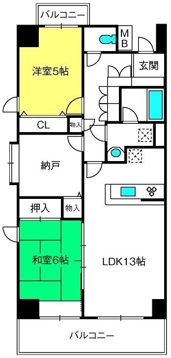 築年数 1993年2月 建物階建 6階 間取り一例 3LDK