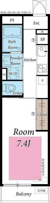 1K( 洋室7.4畳 ) |