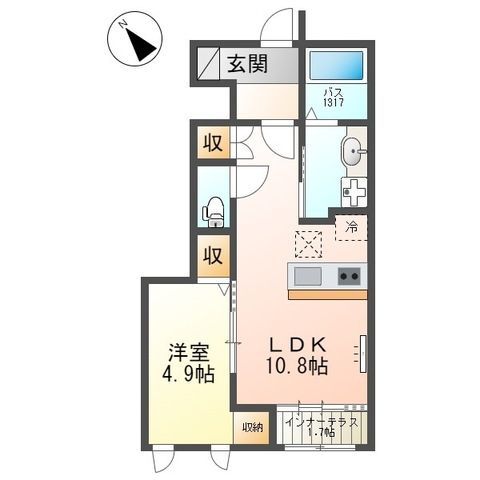 1LDK( 洋室4.9畳/LDK10.8畳 ) |