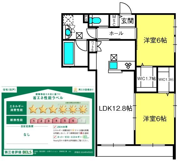 2LDK( LDK12.8畳/洋室6畳/洋室6畳 ) |