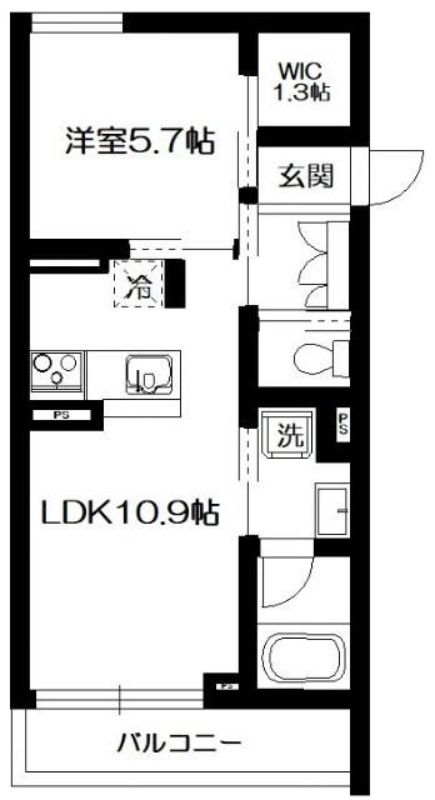 1LDK( 洋室5.7畳/LDK10.9畳 ) |