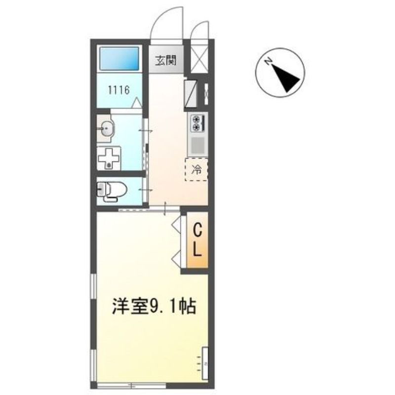 1K( 洋室9.1畳 ) |