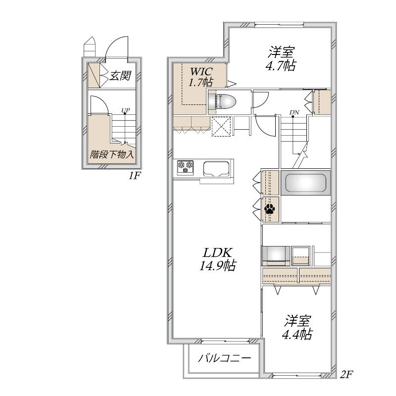 2LDK( LDK14.9畳/洋室4.4畳/洋室4.7畳 ) |